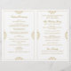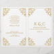 Nadine Wedding Program Foldover (Gold) : Aidez vos invités à suivre votre commande de service mariage avec ce programme de mariage unique vintage corners modèle en or. Ceux-ci seront dépliés (sans pli). La couleur design est fixée dans un or plat, mais vous pouvez changer la couleur du design en changeant la couleur arrière - plan. **COMMENT CHANGER VOTRE COULEUR DE CONCEPTION** 1) Cliquez sur le bouton "Personnaliser". 2) Cliquez sur le lien "ClICK POUR CUSTOMISER PLUS LOIN" en bas. Vous aurez alors la possibilité de changer votre "COULEUR ARRIÈRE - PLAN" en votre couleur mariage. N'oubliez pas de modifier votre couleur de texte pour qu'elle corresponde à votre conception.
