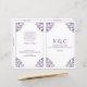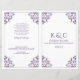 Nadine Wedding Program Foldover (Plum) : Laissez vos invités suivre avec votre commande de service mariage avec ce programme de mariage aux coins vintages unique modèle en prune / violet. Ceux-ci seront dépliés (sans pli). La couleur design est définie en prune, mais vous pouvez changer la couleur du design en changeant la couleur arrière - plan. **COMMENT CHANGER VOTRE COULEUR DE CONCEPTION** 1) Cliquez sur le bouton "Personnaliser". 2) Cliquez sur le lien "ClICK POUR CUSTOMISER PLUS LOIN" en bas. Vous aurez alors la possibilité de changer votre "COULEUR ARRIÈRE - PLAN" en votre couleur mariage. N'oubliez pas de modifier votre couleur de texte pour qu'elle corresponde à votre conception.