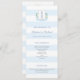 Cette conception intemporelle de programme de mariage comprend une crête monographique d'inspiration côtière classique et d'élégantes rayures bleues et blanches.