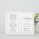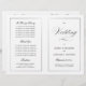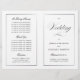 Ce programme est une page de 8,5 x 11 qui vous oblige à le plier pour l'assembler. La bordure de ligne s'estompe dans le coin, ce qui est intentionnel pour correspondre au style de script. Programme de mariage classique en noir et blanc avec une touche moderne avec l'élégant script du mot "Mariage" sur la "couverture" extérieure.