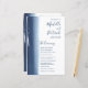 Programme de mariage moderne et créatif avec un design simple avec un trait bleu marine d'aquarelle sur le côté gauche, sur un arrière - plan blanc. Ajoutez vos cérémonies à l'avant et votre fête de mariage à l'arrière. Ce design unique est idéal pour un couple artistique. Ces programmes de mariage bon marché sont imprimés sur des feuilles de papier pour une option économique.