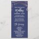 Cet élégant programme d'or rose et de mariage maritime est parfait pour un mariage élégant. Le design se compose d'un cadre feuilleté rose vif sur un arrière - plan bleu foncé et d'une police cursive éblouissante. Inclure le nom de la mariée et du marié, la date et le lieu du mariage, le message de remerciement, l'ordre de service, la fête de la mariée et un mémorial optionnel "en mémoire d'amour". Remarque : Ce design ne présente pas de véritable feuille d'or rose. C'est un graphisme de haute qualité fait pour ressembler à de l'or rose chatoyant.