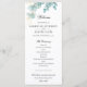 Ce programme de mariage, qui est parfait pour un mariage d'été, présente une belle aquarelle graphique de branches d'eucalyptus accentuées de botaniques d'or. Personnalisez avec l'ordre de votre cérémonie et un merci sur le devant et ajoutez la fête de mariage sur le dos.