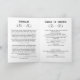 Élégant programme funéraire plié en noir et blanc, avec cadres tourbillonnant ornés. Sur la couverture, sous une croix, le nom de l'être aimé et les années de vie. A l'intérieur, vous pouvez écrire la nécrologie et le programme. Au verso, vous pouvez ajouter des accusés de réception.