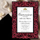 This elegant quinceanera invitation has red glitter scrollwork, a gold tiara crown, and a black background with a personalizable template to create your own message. The invitation template is customizable in the listing editor and is also available as a digital download that's printable after you personalize it.