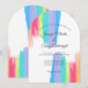Schöne Hochzeitsinie mit Regenbogenbogen mit hübschen, kunstvollen Farbenstrichen in leuchtenden Farben. Diese eleganten Einladungen sind perfekt für ein künstlerisches Paar oder eine homosexuelle und lesbische Hochzeit. Die fröhliche Karte hat eine passende Rückseite.
