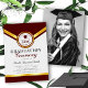 Cette cérémonie de remise de diplômes est décorée d'une élégante mise en page formelle de couleurs rouge, gris clair et or avec un casquette de graduation rouge et des étoiles rouges. Personnalisez votre propre photo de graduation à l'arrière de l'invitation.