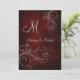 Das ist eine stilvolle, reich aussehende Hochzeitseinladung mit den Braut- und Bräutigam-Vornamen und Monogramm in Silbergrau auf einem eleganten bordeauxroten Farbverlauf. Hübsche silberne Wirbel enden vor der Einladung. Auf der Rückseite ist der Hochzeitstext in silbergrau auf demselben roten Hintergrund gehalten. Sehr hübsch für Winter- oder Herbsthochzeiten, vor allem, aber stilvoll für jede Jahreszeit.