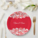 Elegant Red White Floral Name Party Pappteller