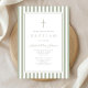 Elegant Religious Sage Green Boy Baptism Invitation. For best results upload a square image of the baby.