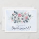 Das wunderschöne Design der Karte "wirst du meine Brautjungfrau sein" mit rosa und weißen Aquarellfarben-Blume auf einem hellblauen Hintergrund. Matching-Elemente verfügbar.