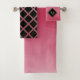 Rien ne parle d'élégance comme cet élégant ensemble de serviettes de bain rose et noir monogramme. Cette conception simple et sophistiquée de dégradé brossé avec un cadre moderne en forme de losange avec une bordure en or peut être personnalisée en ajoutant votre initiale monogrammée. Impression plane, NON métallique.