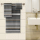 Une belle serviette de bain rayée aux couleurs noir et gris avec de minuscules lignes d'or rose.