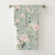 Jolies fleurs roses et bleues aux accents de verdure et de jolis eucalyptus sur un arrière - plan vert sauge. Parfait pour votre salle de bain. Si joli. Juste beau.