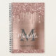 Parties scintillant en or rose de luxe goutte nom personnalisé et monogrammed 2024 ou n'importe quel planificateur d'année. Ce design présente des gouttes de parties scintillant rose rose rose rose rose sur arrière - plan métal brossé faux rose avec original personnalisé, monogramme et modèle texte de prénom. Un cadeau personnalisé parfait pour les filles. Grand cadeau pour l'école, le travail professionnel, le bureau à domicile. Veuillez noter que ce design est un effet photo imprimé sans réelle parties scintillant.