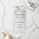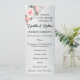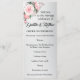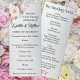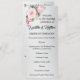 Ce magnifique programme de mariage présente un thème rose et argent. Un beau bouquet de fleurs roses se trouve dans le coin supérieur, avec un deuxième bouquet de roses plus petit au fond de la carte. Le tout sur un arrière - plan gris/argent métallique.