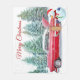 Niedliche, farbenfrohe Weihnachtsgeschenke in der roten Tasche auf glänzendem Hintergrund, mit Text...Frohe Weihnachten...Sie können leicht mit Ihrer Textauswahl personalisieren.