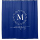 Elegant Royal Blue Personalisiert Wreath Monogram Duschvorhang