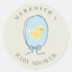Niedlich trifft sich elegant mit diesen Babyduschklebern mit einer handgezeichnet Gummiente in einem weichen blauen Band. Die Typografie ist schick und elegant.