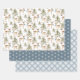 Wrap your gifts in a stunning, cohesive winter aesthetic with this set of three coordinating wrapping papers. The collection features a sophisticated blend of watercolor woodland elements and classic patterns in a trendy dusty blue, cream, and taupe palette.
