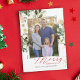 Diese elegante Weihnachtskarte zeigt einen Aquarellstil, der Blume und Kiefernäste mit Strichen von Imitaten Glitzer veranschaulicht. Im Zentrum steht ein Foto für die ganze Familie. Dieses Design hat einen rustikalen und dennoch modernen Look und ist perfekt, um Urlaubswünsche an Verwandte und Freunde zu senden.