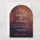 Invite your guests with this stunning arched wedding invitation featuring a rich, dark wood grain texture that exudes rustic elegance. This modern yet organic design perfectly captures the romantic essence of a woodland or country-style celebration.
