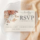 Cette élégante carte RSVP d'automne présente des fleurs d'aquarelle orange brûlée et en terre cuite avec des roses de jardin boho et des dahlias bordeaux. La calligraphie manuscrite rustique ajoute du charme à ce design simple et moderne, parfait pour les mariages de automne d'extérieur bohème.