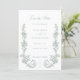 Elevate your special day with this elegant, sage green classic floral design featuring baroque-style scrolls with columns of toile roses and foliage. Includes text fields, QR code and photo template.