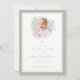 Elegant Sage Green Bow Photo Baptism Invitation. For best results upload a square image of the baby.