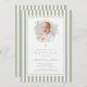 Elegant Sage Green Bow Photo Boy Baptism Einladung