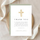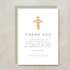 Elegant Sage Green Religious Cross Confirmation Thank You Card.