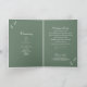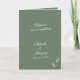Eine schöne elegante Schrift Typografie Hochzeitsdesign mit einem schlauen olivgrüne Hintergrund Farbe. Ein einzigartiges Design, das einen persönlichen klassischen Kalligraphie Hochzeitsladen Schriftart und einen handgezeichneten grünen Blattzweig verwendet. Ein formelles Skript Kalligrafie-Design mit Tönen von Salbei Oliven grün. Eine elegante Hochzeitsordnung des Service-Programm-Design mit klassischen traditionellen Elementen. Auch die passenden Hochzeitseinladungen und andere Schreibwaren sind verfügbar.