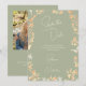 This stunning Wedding Save the Date has delicate yet vibrant wildflowers that almost seem to glow, adorning the edges and the Modern Handwritten Script lettering in an Ivory color. The background is a pretty Sage Green that showcases your names and details perfectly! Add Your Photo to the back, with the template. There are a few color combinations to choose from so check them all out at the Ivy Barn Studio store!