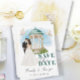 Mit unserer eleganten Save the Date-Karte verkünden Sie Ihren besonderen Tag. Dieses Design mit einer romantischen Darstellung der Braut und des Bräutigams an einem malerischen Ort mit einem zauberhaften Gazebo, der mit Blume und zwei anmutigen Tauben geschmückt ist, ist der ideale Set für Ihre Hochzeit. Auf der Rückseite ist ein luxuriöser goldener Hintergrund mit zusätzlichen Tauben zu sehen, die Liebe und Einheit symbolisieren. Personalisieren Sie mit Ihren Namen und Hochzeitsdatum, um es einzigartig zu machen. Ideal für Paare, die eine raffinierte und unvergessliche Möglichkeit suchen, ihre großen Neuigkeiten zu teilen