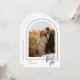 Une élégante et moderne carte de remerciements en arc de cercle, avec un texte "merci" et des bordures élégantes autour de vos photos. Personnalisez le modèle avec vos initiales, votre date de mariage, votre message et vos photos. Tout le texte, les éléments et les couleurs arrière - plans sont modifiables afin que vous puissiez créer une carte personnalisée qui correspond parfaitement à votre photo. © Kimbellished, LLC