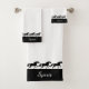 Elegant modern black horse silhouettes and script text on black and white Bath Towel Set. Simple stylish design