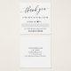 Merci pour votre forfait achat insérez dans un design élégant et minimaliste avec un coeur où la personne qui a préparé le forfait peut signer leur nom à la main pour une touche personnelle. Ajoutez vos coordonnées de l'autre côté de la carte de remerciements pour votre carte de commande. Vous pouvez également noter un code de réduction pour le prochain achat de vos clients.