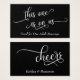 Offrez à vos invités des libations complémentaires avec ces billets de boisson polyvalents. Que ce soit votre réception de mariage ou un autre événement festif, ces bons sont utiles dans toutes les circonstances où une élégance simple est en ordre. // Sur un site vous lisez "celui-ci est sur nous" et "Bon pour un Boisson Adulte" et de l'autre côté "applaudissements" et un détenteur de place modèle pour les noms des hôtes. Les superpositions graphiques textuelles non modifiables sont rendues dans une police de script calligraphie élaborée et magnifique avec des tourbillons et des fleurs. D'autres textes apparaissent en italique dans une police serif polyvalente qui peut être modifiée si vous le souhaitez. Tout le texte est en blanc et l'arrière - plan modifiable est en noir ; changez-le en n'importe quelle couleur que vous aimez, ou même ajoutez votre propre couleur arrière - plan ! N'hésitez pas à contacter si vous avez des demandes ou avez besoin d'aide pour customiser. // 55 // Conçu par Melody Watson pour Paper Muserie.