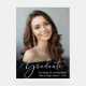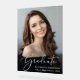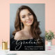 Panneau de bienvenue acrylique de la fête de graduation avec la photo de la grad superposée avec "Graduate" dans un élégant script blanc. Ajoutez le nom, l'année de classe et l'école dans une simple typographie blanche moderne.