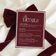 Elegant Script Burgundy Red Formal Wedding Details Begleitkarte