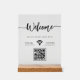 Faites une impression mémorable avec notre élégant script de bienvenue WIFI QR Code Metallic Gold Pedestal Sign. Ce design simple mais élégant présente un script d'accueil élégant avec un logo wifi simple ci-dessous dans un style moderne contre un arrière - plan en or métallisé faux brossé. Les informations réseau, y compris le mot de passe, sont bien mises en page de manière spacieuse.