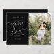 élégante calligraphie merci carte photo avec une police de script de premier plan sur différents arrière - plans de couleur avec votre propre photo et une note aimable sur le dos