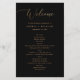 Faites une déclaration étonnante avec ce programme de mariage à deux côtés avec élégante calligraphie dorée sur un arrière - plan noir. La première page présente votre commande de service, tandis que l'inverse inclut les noms de votre mariage, tous placés dans une typographie serif intemporelle. L'effet d'or imprimé (pas de véritable feuille) offre un contraste de luxe sur fond gras. Parfait pour les mariages formels, de cravate noire ou haut de gamme. Ce programme personnalisable ajoute une touche polie et mémorable à votre suite de cérémonie.