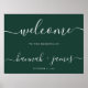 Élégant Script Minimal Emerald Green Mariage Affiche de bienvenue. Modèle design classique, simple et moderne avec signature calligraphie manuscrite typographie de script.
