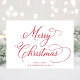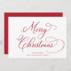 Elegante Urlaubskarte mit "Frohe Weihnachten" in einem roten Kalligraphieskript. Fügen Sie Ihre personalisierte Begrüßung und Ihren Familiennamen in einem modernen, roten Schriftsatz hinzu.