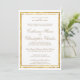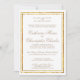 Faire-part de mariage classique en or et blanc avec une touche moderne avec l'élégant script des noms de couples et une fausse bordure en or.