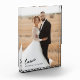 Belle photo de blocage de jour de mariage. Le mot Amour est conçu dans un script élégant incluant le nom de la mariée et du marié.