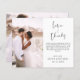 Express votre gratitude sincère dans le style intemporel avec ce Carte de remerciements Elegant Script Photo Mariage. Avec une calligraphie raffinée, une mise en page complète des photos et des éléments de design minimaliste, cette carte est la façon parfaite de remercier vos invités tout en présentant un moment chéri de votre grand jour. Idéal pour des thèmes mariages modernes, romantiques ou classiques, il est entièrement personnalisable avec votre message et votre photo.