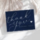 Un carte de remerciements mariage moderne avec un merveilleux script blanc sur couleur bleu marine. Ajoutez un message de remerciement personnel à vos invités.