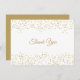 Avec des confettis de poussière d'or élégants encadrant votre message de remerciement dans une typographie dorée élégante. Vous pouvez personnaliser avec votre propre message de remerciement et noms, et le message au verso ou supprimer le texte si vous préférez. Un moyen parfait de dire merci ! Conçu par Thisisnotme©